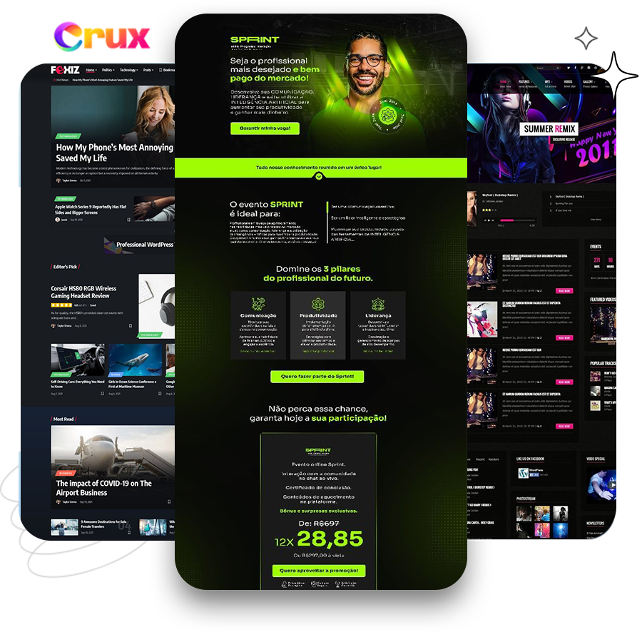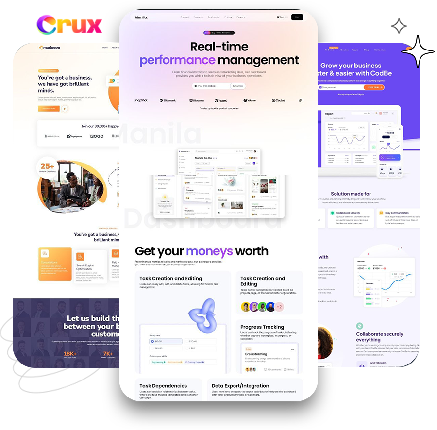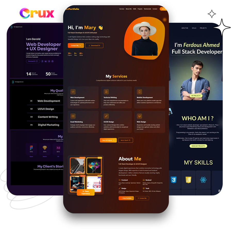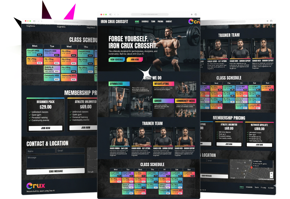 - Websites. Stores. Funnels. Portfolios. Blogs. Booking Pages. Course Platforms. SaaS Landing Pages. Apps. Whatever you can describe, Crux AI builds it.