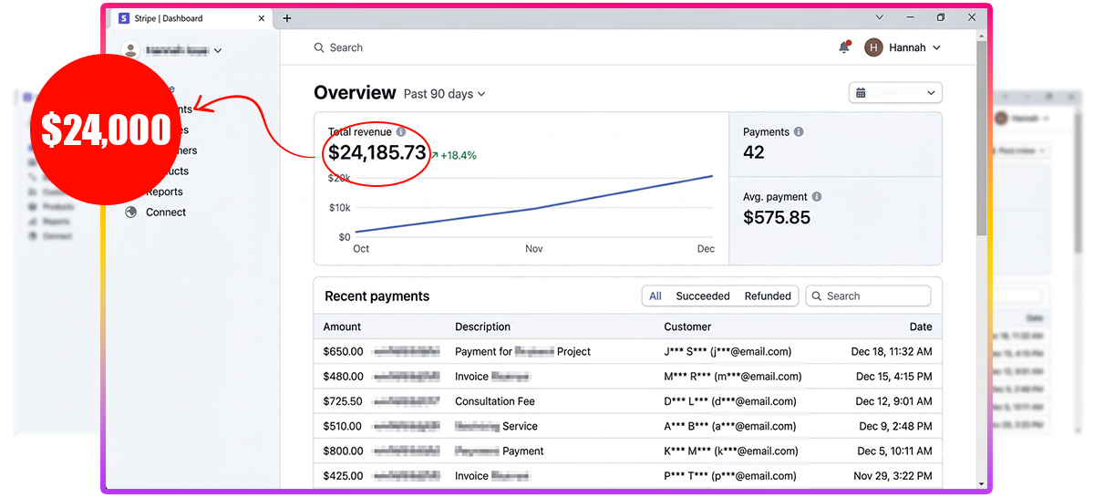 Hannah from Toronto — $24,000 from 40 client projects