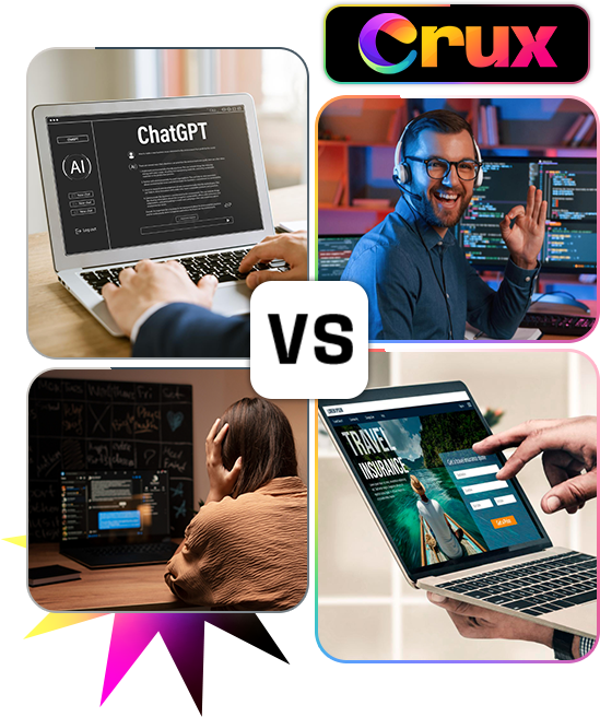 The only difference? With Crux AI, you can build them in minutes instead of days.