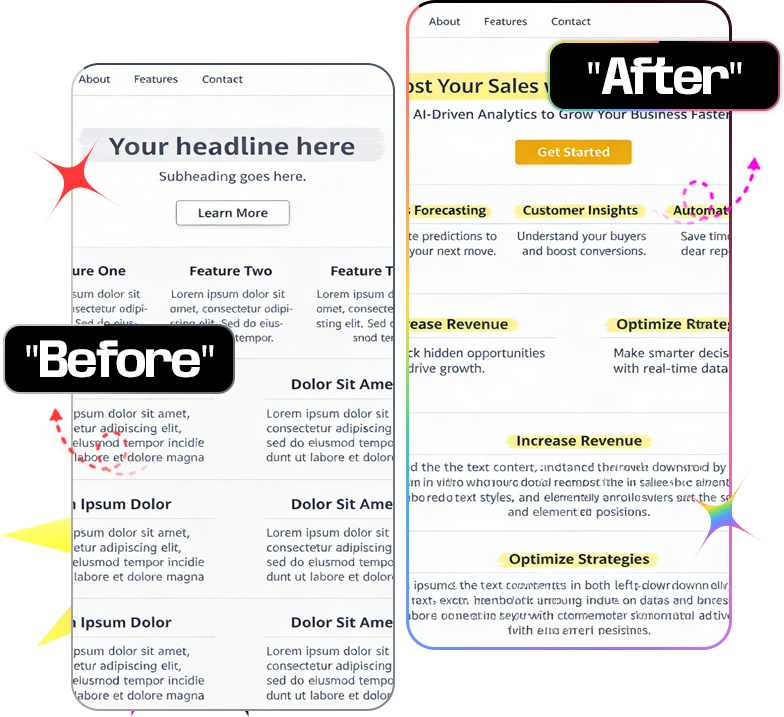 - It doesn't just design — it writes. Every headline, paragraph, and call-to-action on your site is generated automatically. Tailored to your business. Ready to convert.