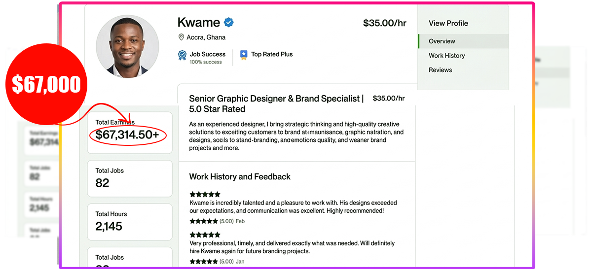 Kwame from Accra — $67,000 on freelance platforms