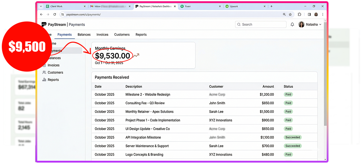 No computer science degree. Just a laptop and WiFi. Over 80 completed projects on Upwork and Fiverr in two years.